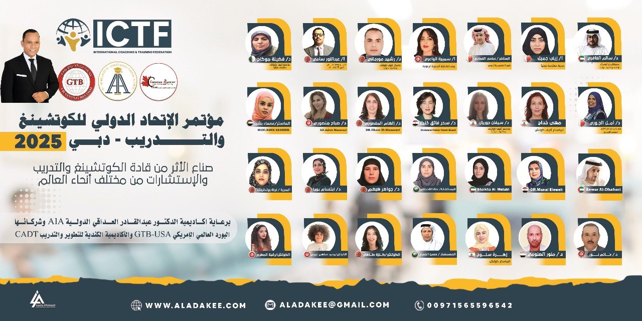 أكاديمية الدكتور عبدالقادر العداقي الدولية AIA تنظم مؤتمر ICTF الدولي (الاتحاد الدولي للكوتشينغ والتدريب في دبي بالشراكة مع جهات دولية معتمدة) في دبي بالشراكة مع جهات دولية معتمدة دوليا.