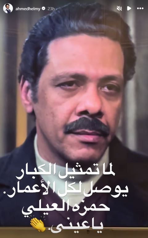 ونشر الفنان أحمد حلمي عبر خاصية “الأستوري” على موقع “إنستجرام” صورة للفنان حمزة العيلي، معلقًا: “لما تمثيل الكبار يوصل لكل الأعمار.. حمزة العيلي يا عيني”.