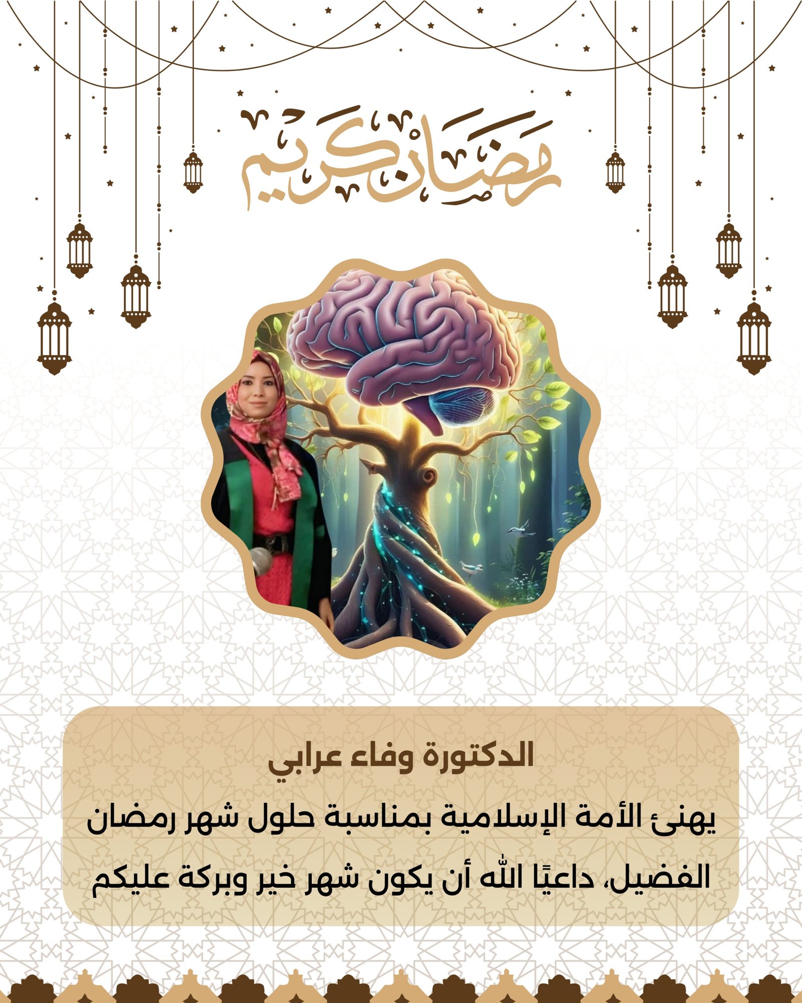 الدكتورة” وفاء عرابى” مديرة دورة ( صناديق )لتنشيط الذاكرة والتركيز تهنئ الأمة الإسلامية بحلول شهر رمضان المبارك ويبعث تهنئة خاصة لجميع محبية.