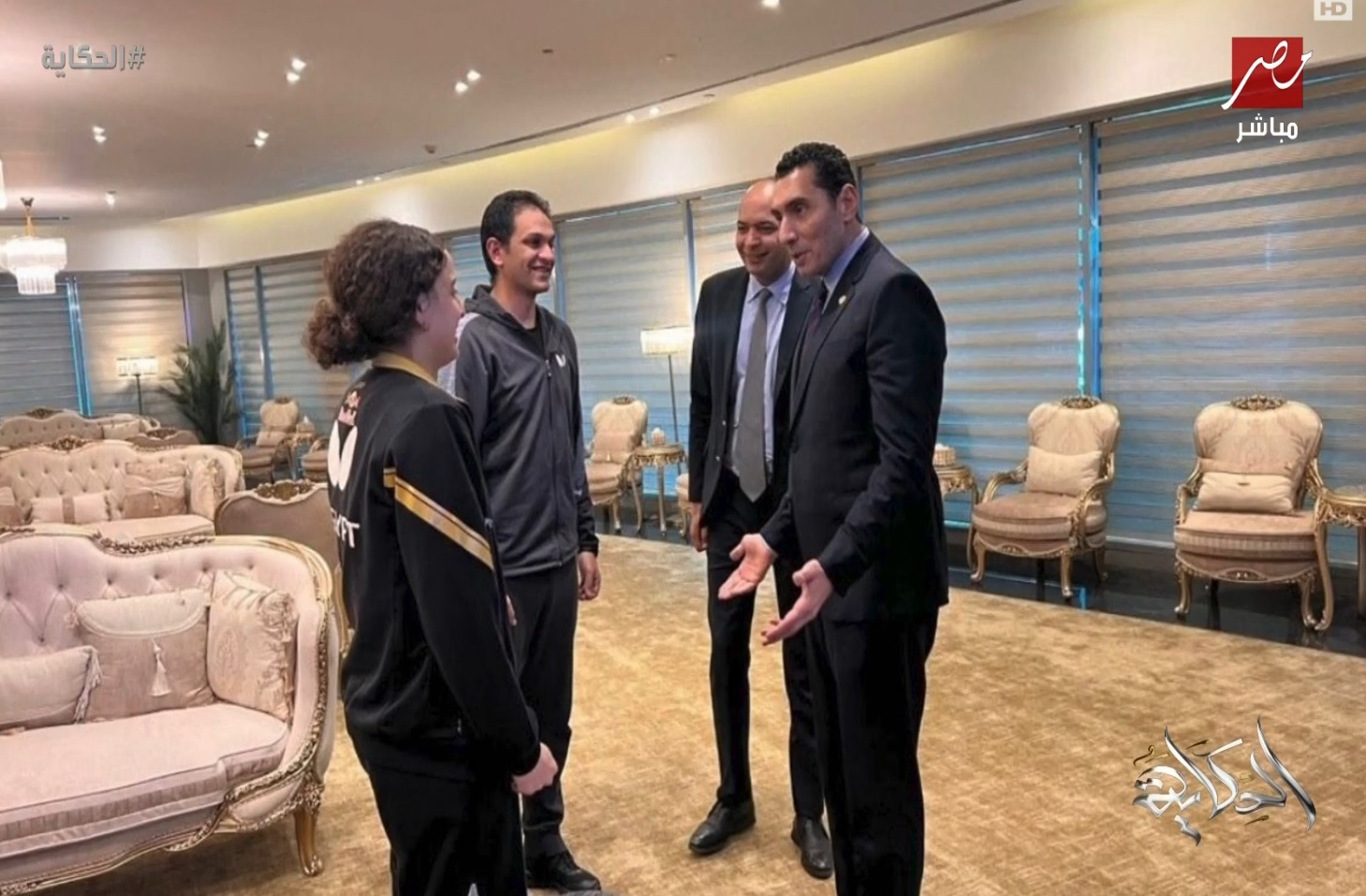 انتقد الإعلامي عمرو أديب بشدة صورة استقبال وزير الشباب والرياضة، جوهر نبيل، للاعبة البينج بونج، هنا جودة، مشيرًا إلى أن القاعة كانت مضاءة بشكل مبالغ فيه، حيث ظهرت نجفتين كاملتين مضاءتين بالكامل بالإضافة إلى 5 أباجورات وعدد كبير من اللمبات في السقف.
