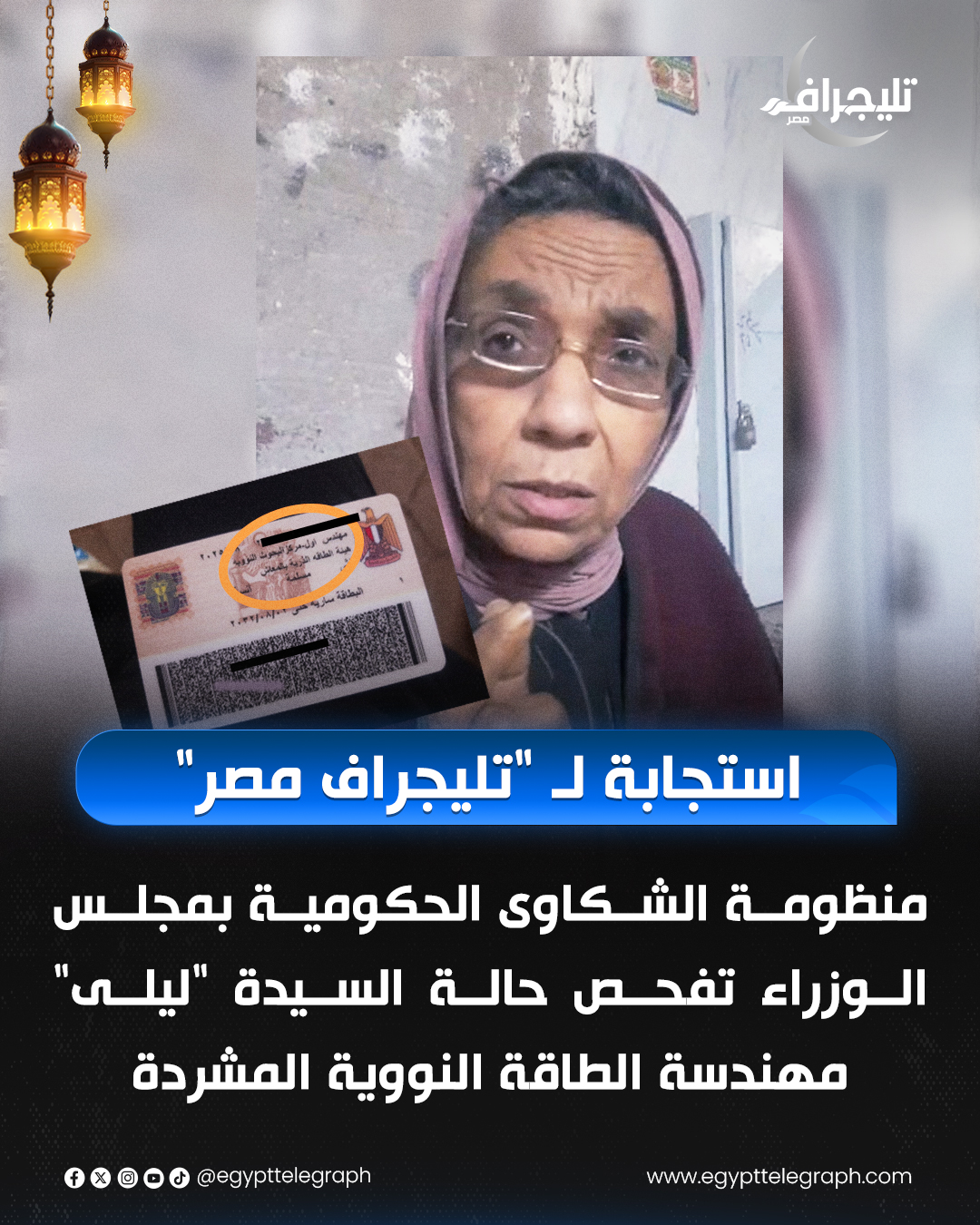 في استجابة سريعة تعكس حرص الدولة على رعاية أبنائها، تواصل مجلس الوزراء، ممثلًا في منظومة الشكاوى الحكومية ومنظومة الرعاية الطبية، مع “تليجراف مصر” لإنقاذ المهندسة ليلى إبراهيم، مهندسة الطاقة النووية السابقة، التي افترشت رصيف منطقة كفر طهرمس بالجيزة، بعد طردها من المنزل، وذلك بعد ساعات من التقرير الإنساني الذي نشره الموقع وكشف فيه معاناتها.