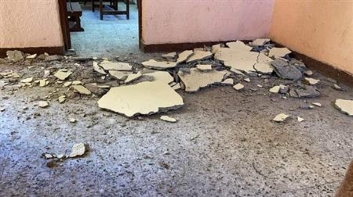كما أضاف المصدر، أن السقف سقط داخل فصل بالصف الثالث الابتدائي بالأمس، ولم يسقط كله بل جزء منه، والإصابات كانت طفيفة للغاية.