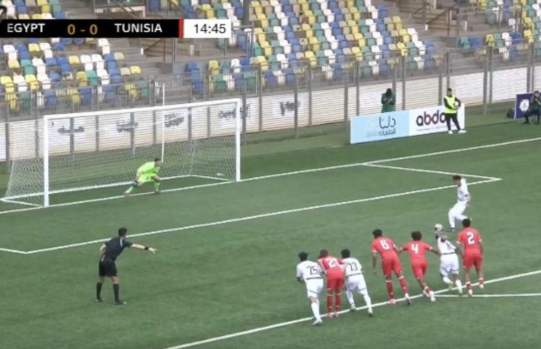 وجاءت البداية بضغط مصري واضح، حيث سجل أدهم حسيب أول ظهور هجومي خطير، بعدما استقبل عرضية متقنة من محمد جمال وارتقى لها برأسية قوية من داخل منطقة الجزاء، لكنها لم تسفر عن هدف، لتكون بمثابة إنذار مبكر للدفاع التونسي.