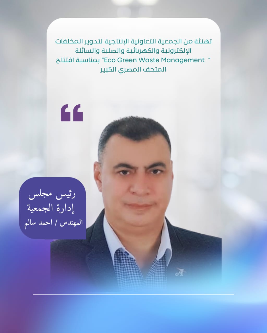 تهنئة من الجمعية التعاونية الإنتاجية لتدوير المخلفات الإلكترونية والكهربائية والصلبة والسائلة