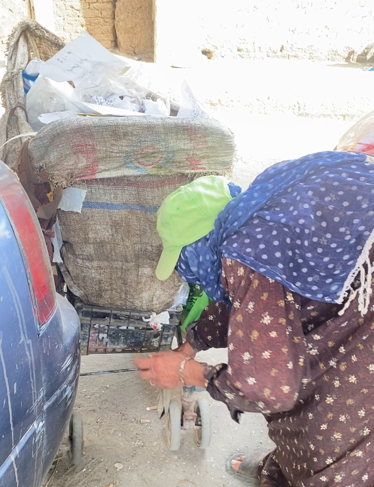 تستيقظ الست صابرين كل صباح، لا لترتاح في منزلها، بل لتبدأ رحلة البحث بين الشوارع عن “الكراتين” والمخلفات الورقية. تجمعها بعناء شديد وتبيع الكيلو الواحد بمبلغ زهيد لا يتجاوز 5 جنيهات.