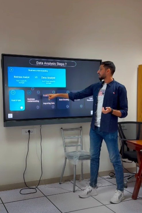 أيضاً، يعتمد في تدريباته على منهجية عملية تركز على بناء أساس نظري قوي، ثم نقل المتدرب إلى مستوى احترافي من خلال مشروعات تطبيقية تحاكي واقع العمل داخل الشركات. ويرى أن أفضل طريقة للتعلم هي ممارسة التحليل على بيانات حقيقية، واستخدام أدوات احترافية مثل Excel المتقدم، Power BI، SQL، وPython، وغيرها من التقنيات التي أصبحت اليوم ضرورية في معظم المجالات.