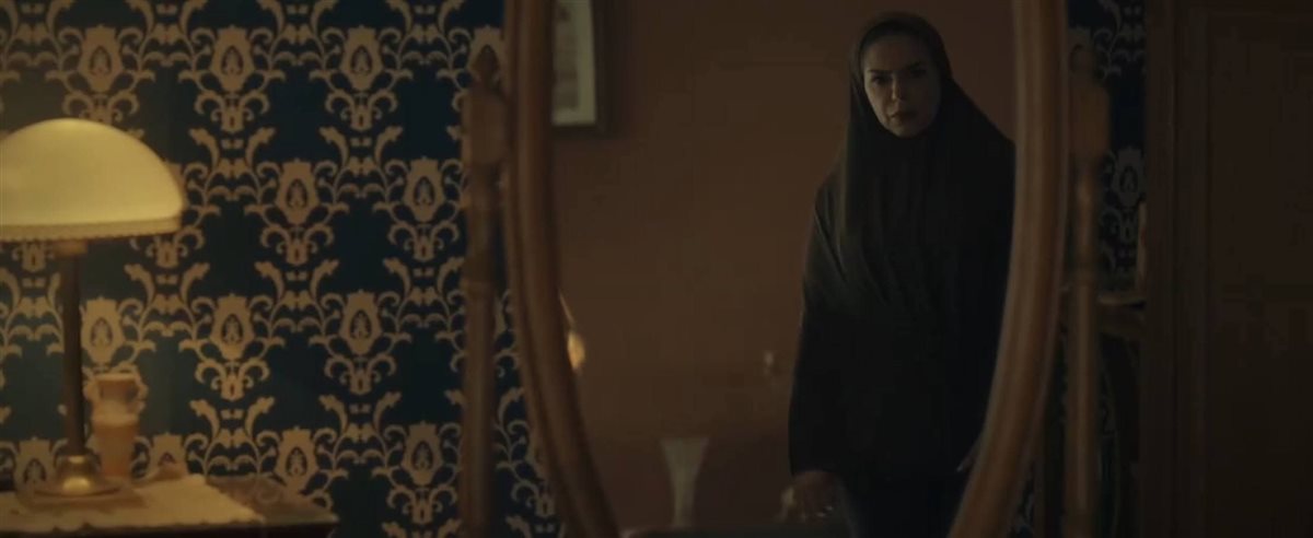 وعندما تقترب منال وتنظر إلى انعكاسه، تتعرض لصدمة مرعبة بعدما تكتشف أن الطفل الذي بين يديها لا يظهر له أي انعكاس في المرآة، واختفى بعدها بمجرد سماعه القرآن.