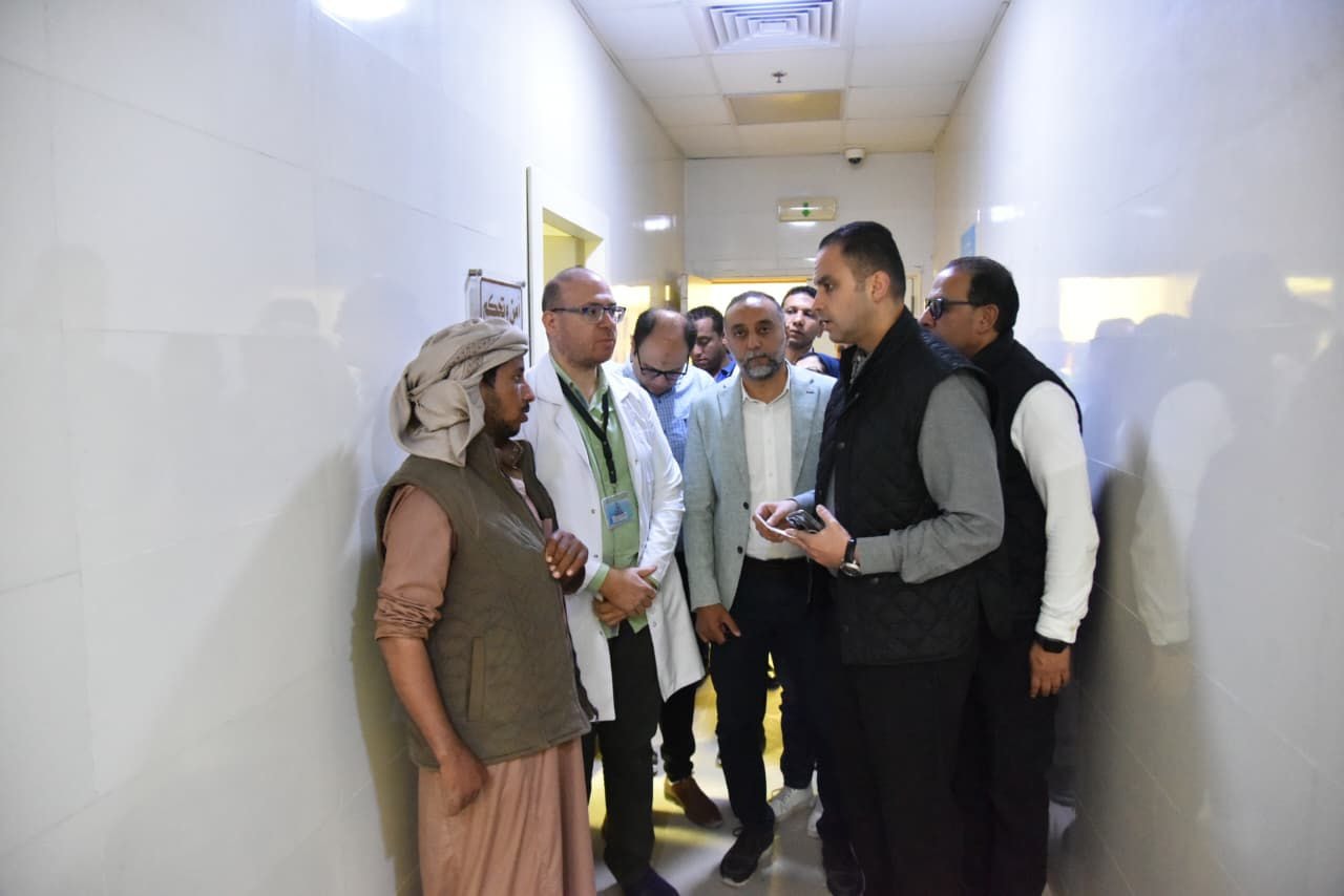 تفقد نائب الوزير قسم الطوارئ، الأقسام الداخلية، الرعاية المركزة، الحضانات، وأقسام الأشعة والصيدلية، للتحقق من توافر الأدوية والمستلزمات الطبية، واطلع على معدلات التردد على العيادات الخارجية وبروتوكولات العلاج، موجها بضرورة المتابعة الدقيقة لحالات المرضى لضمان جودة الرعاية.