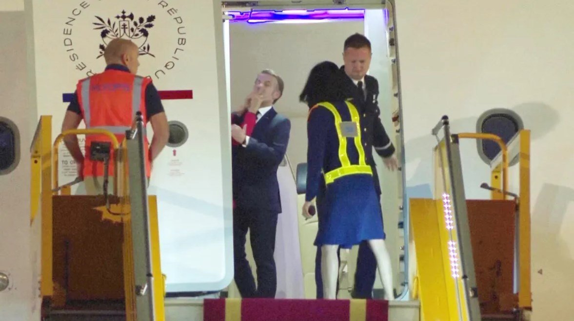 لحظة غريبة يبدو فيها أن ماكرون قد تلقى صفعة على وجهه من زوجته