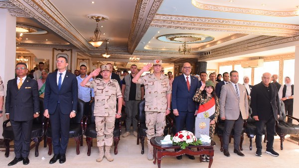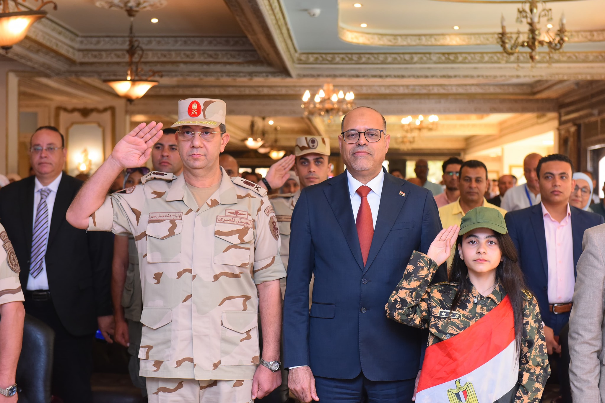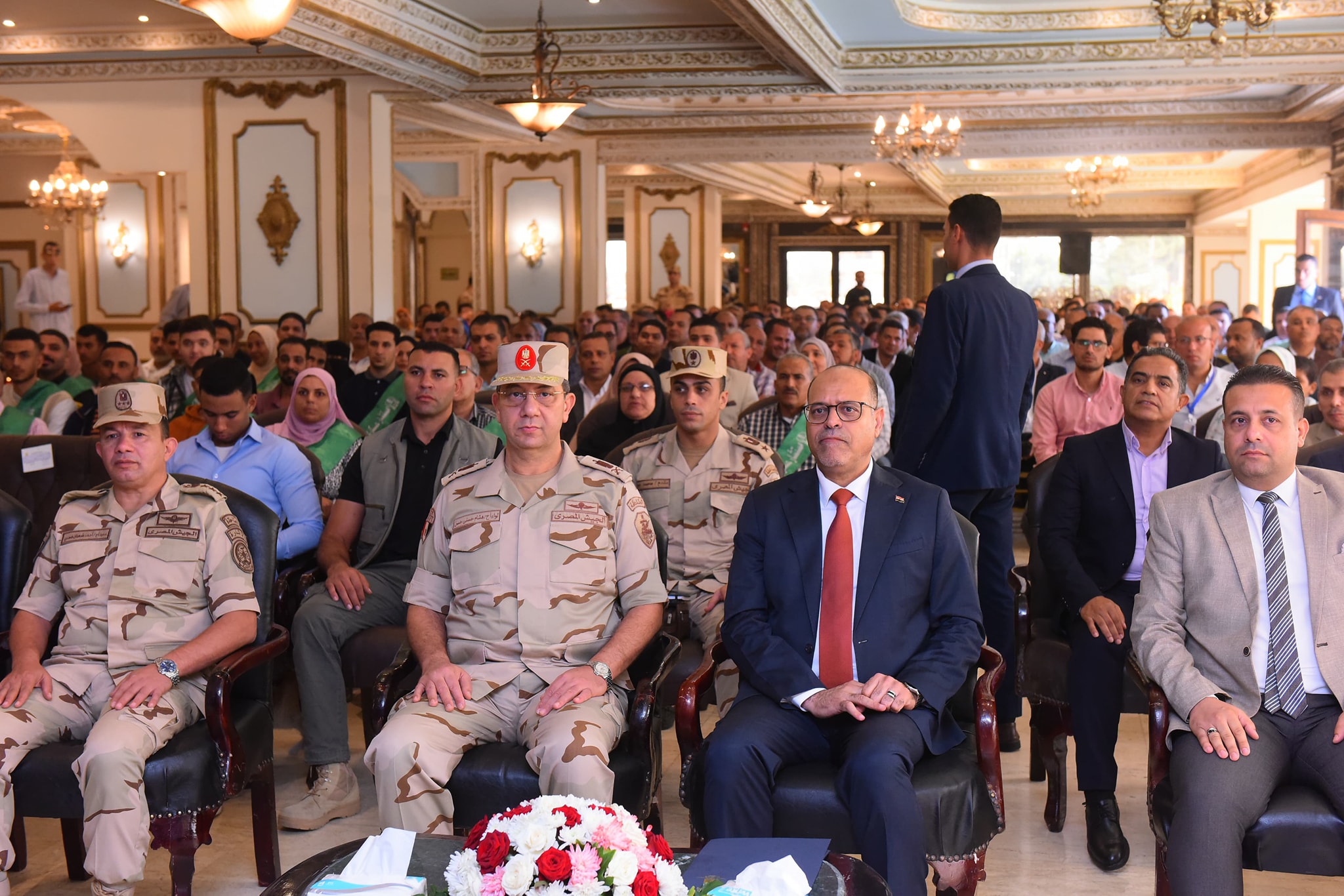 كما ألقى اللواء أركان حرب هشام حسني حسن، قائد قوات الدفاع الشعبي والعسكري، كلمة نقل خلالها تحيات وتقدير الفريق أول عبد المجيد صقر القائد العام للقوات المسلحة وزير الدفاع والإنتاج الحربي، والفريق أحمد خليفة رئيس أركان حرب القوات المسلحة، معربًا عن سعادته بالتواجد وسط هذا الجمع الكبير من الشباب، الذي يمثل النبراس المضيء لمستقبل الوطن، وقاطرته نحو التقدم والريادة.