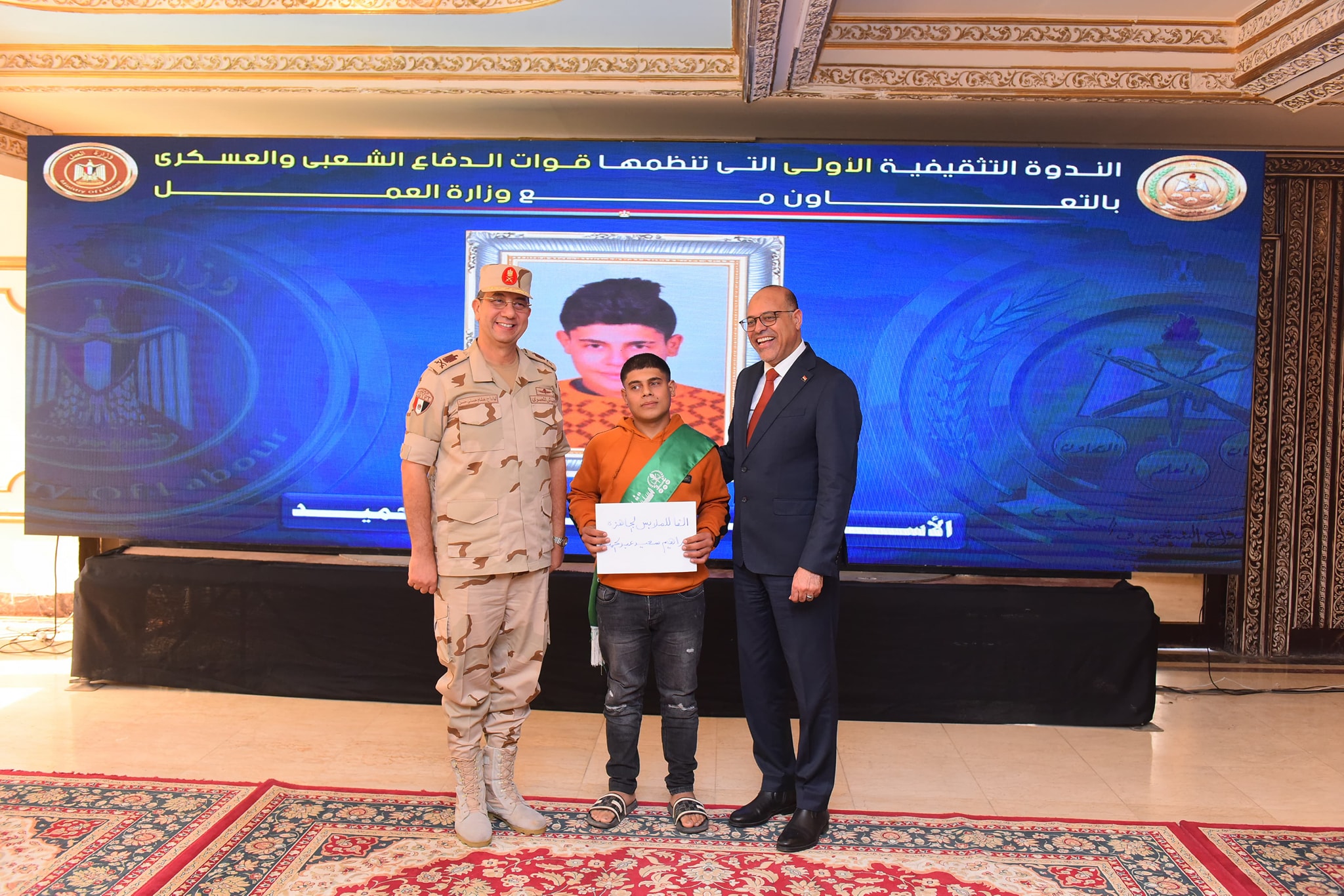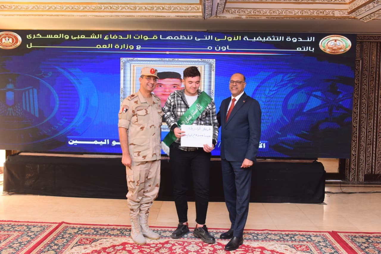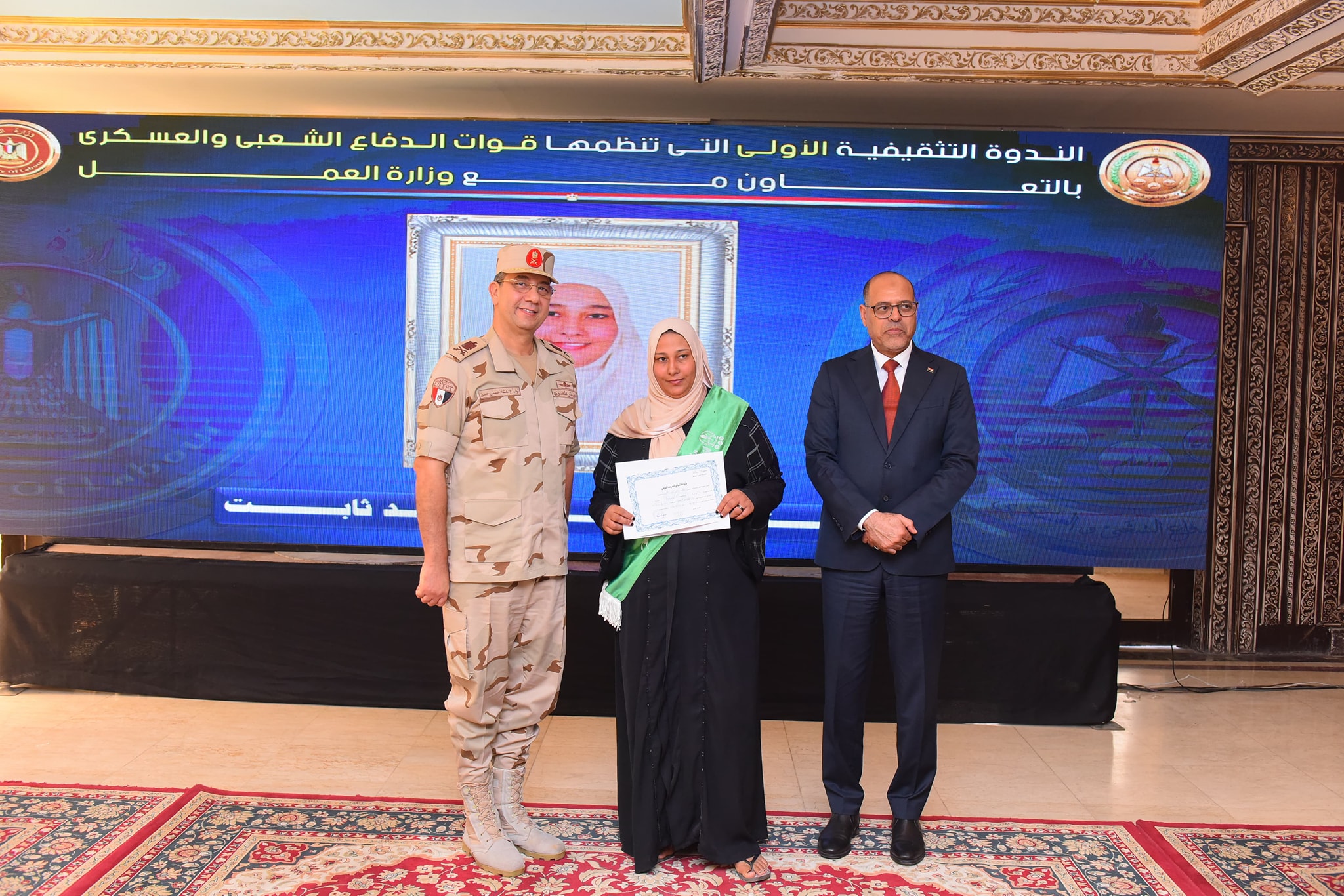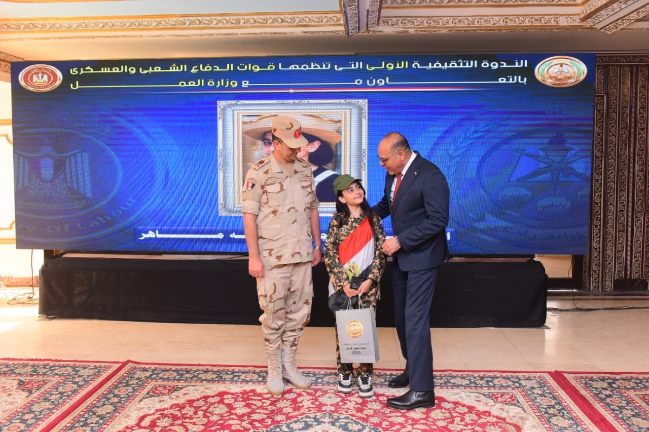 حضر الندوة اللواء أركان حرب قائد قوات الدفاع الشعبي والعسكري، وعدد من قيادات وزارة العمل والقوات المسلحة، فضلًا عن مجموعة من الشباب والعمال من مختلف القطاعات.