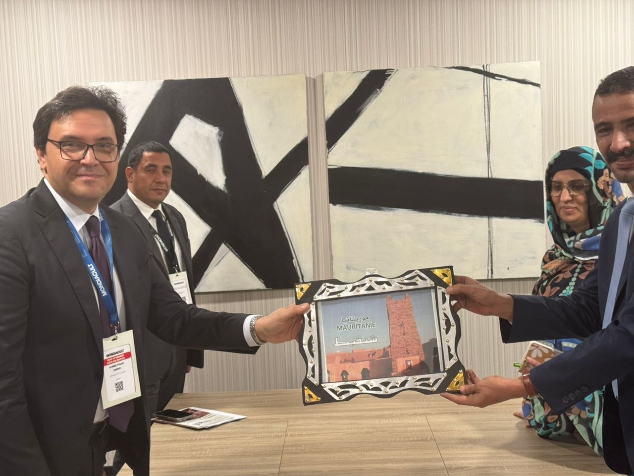 حيث التقى الدكتور أحمد فؤاد هنو، الحسين ولد مدو، وزير الثقافة والفنون والاتصال والعلاقات مع البرلمان في موريتانيا، وتم التأكيد على عمق العلاقات الأخوية بين البلدين، والتوافق على توسيع مجالات التعاون الثقافي والفكري، خاصة في النشر والمشاركة بالفعاليات الأدبية والفكرية. وأشاد الوزير المصري بثراء المشهد الأدبي الموريتاني، فيما أعرب الوزير الموريتاني عن دعم بلاده الكامل لترشيح الدكتور خالد العناني، مرشح مصر لمنصب مدير عام منظمة اليونسكو.