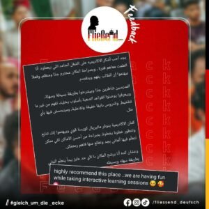 وبهذا الفكر، تواصل أكاديمية Fließend Deutsch تعزيز مكانتها كواحدة من أهم المنصات التعليمية في الإسكندرية، محوّلة تعلم الألمانية من مهارة لغوية إلى رحلة حياة تصنع مستقبلًا مهنيًا متكاملًا.