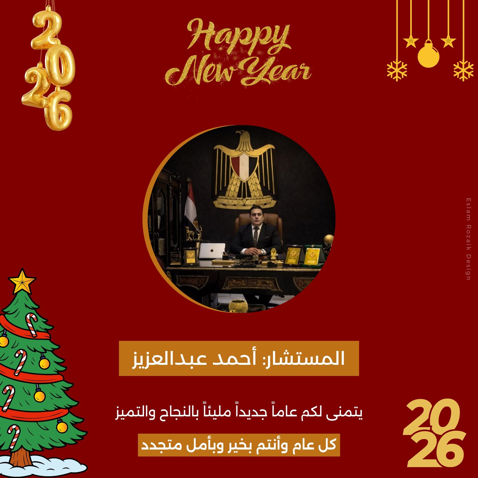 المستشار أحمد عبدالعزيز يقدم أجمل التهاني بمناسبة دخول 2026 قائلاً لكل محبية :كل عام وأنتم قادرون على صناعة الفارق في حياتكم وحياة من حولكم.